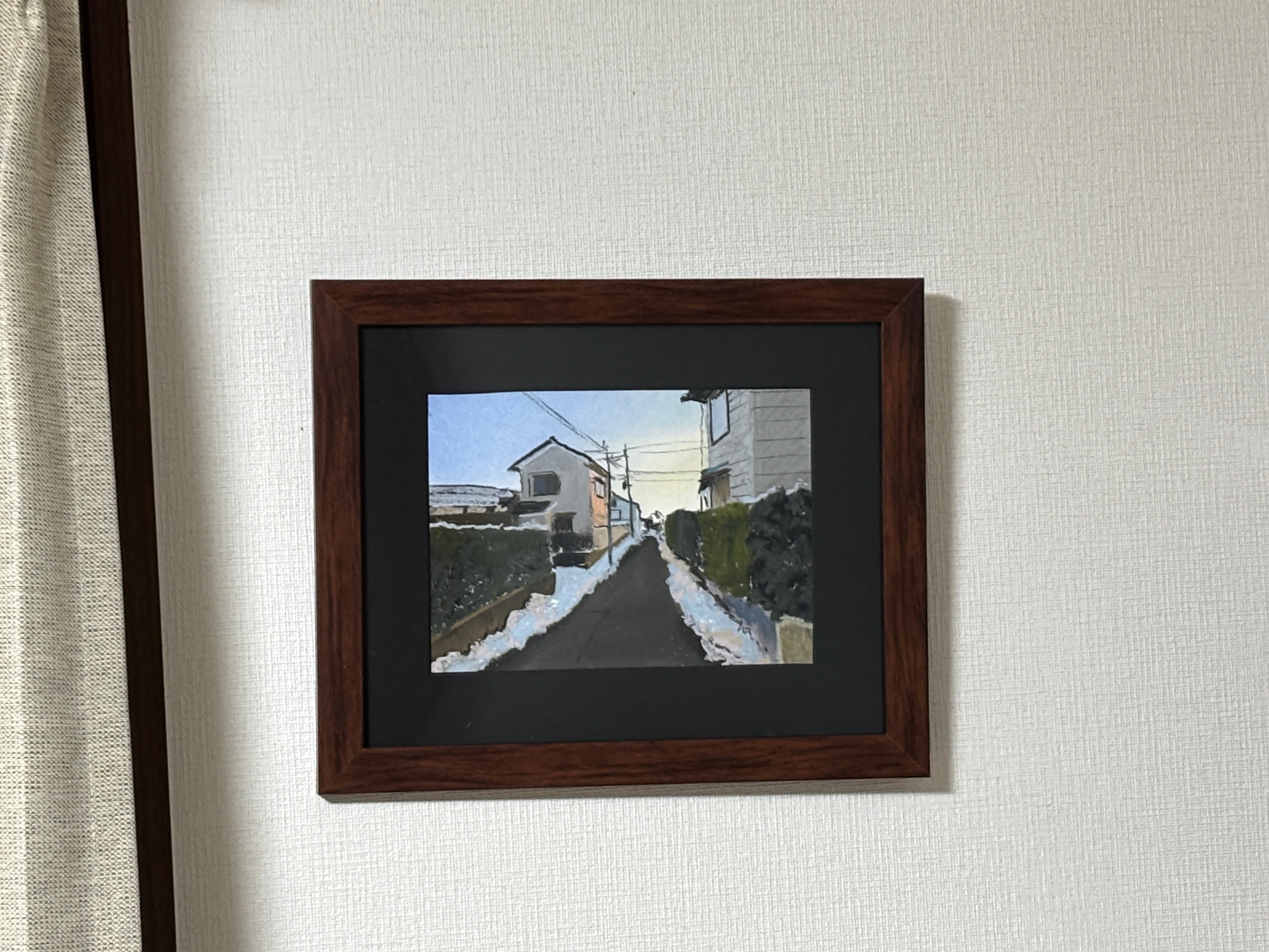 作品に合った額を選定し、額装した状態で作品を発送いたします。額装の雰囲気は画像2枚目、をご覧ください。画像の額装は、展示用の額装です。お買い上げいただいた際は、再度別の最適なマット及び額を選定して額装いたします。