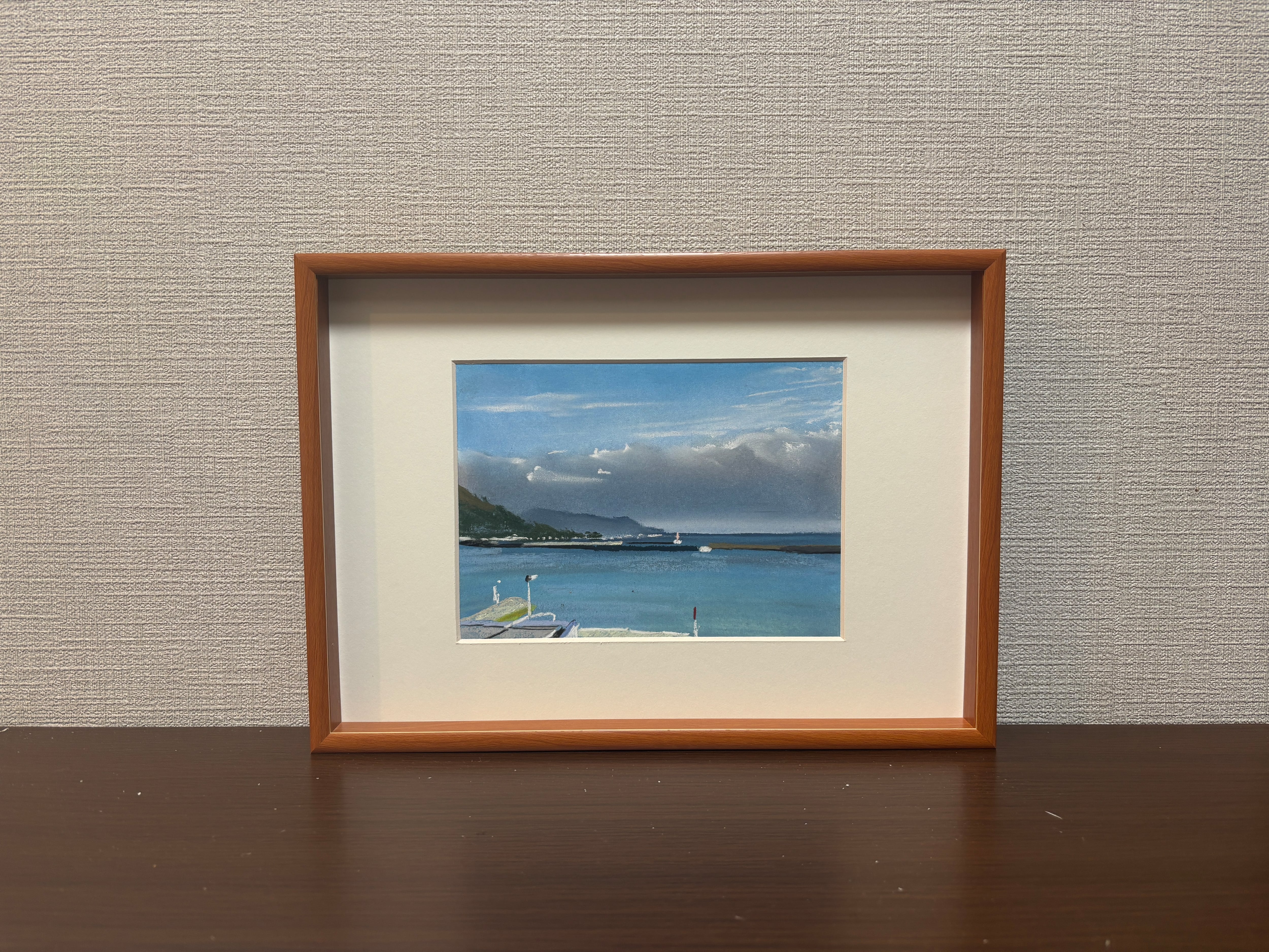 作品に合った額を選定し、額装した状態で作品を発送いたします。額装の雰囲気は画像2枚目、をご覧ください。画像の額装は、展示用の額装です。お買い上げいただいた際は、再度別の最適なマット及び額を選定して額装いたします。