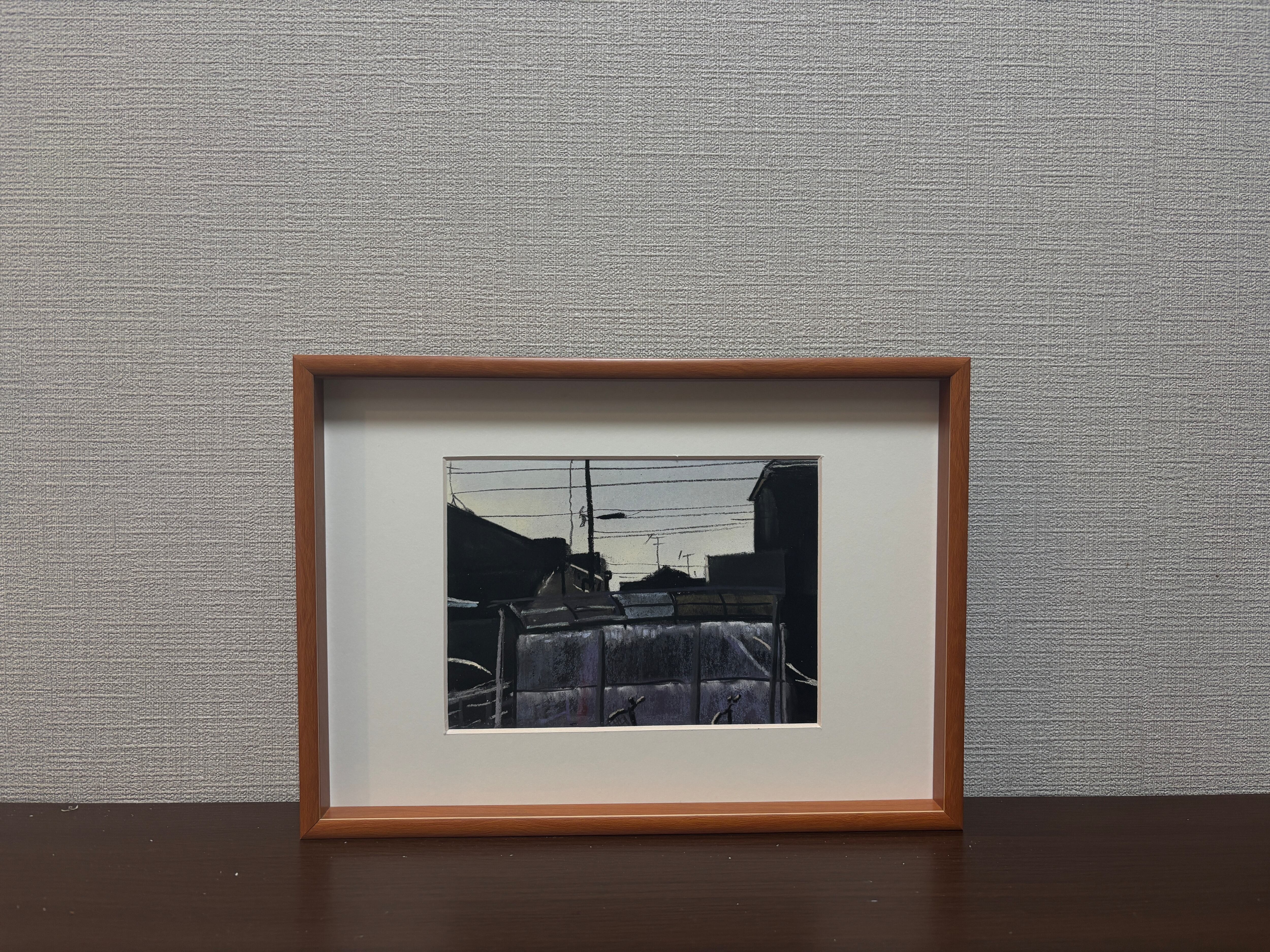 作品に合った額を選定し、額装した状態で作品を発送いたします。額装の雰囲気は画像2枚目、をご覧ください。画像の額装は、展示用の額装です。お買い上げいただいた際は、再度別の最適なマット及び額を選定して額装いたします。