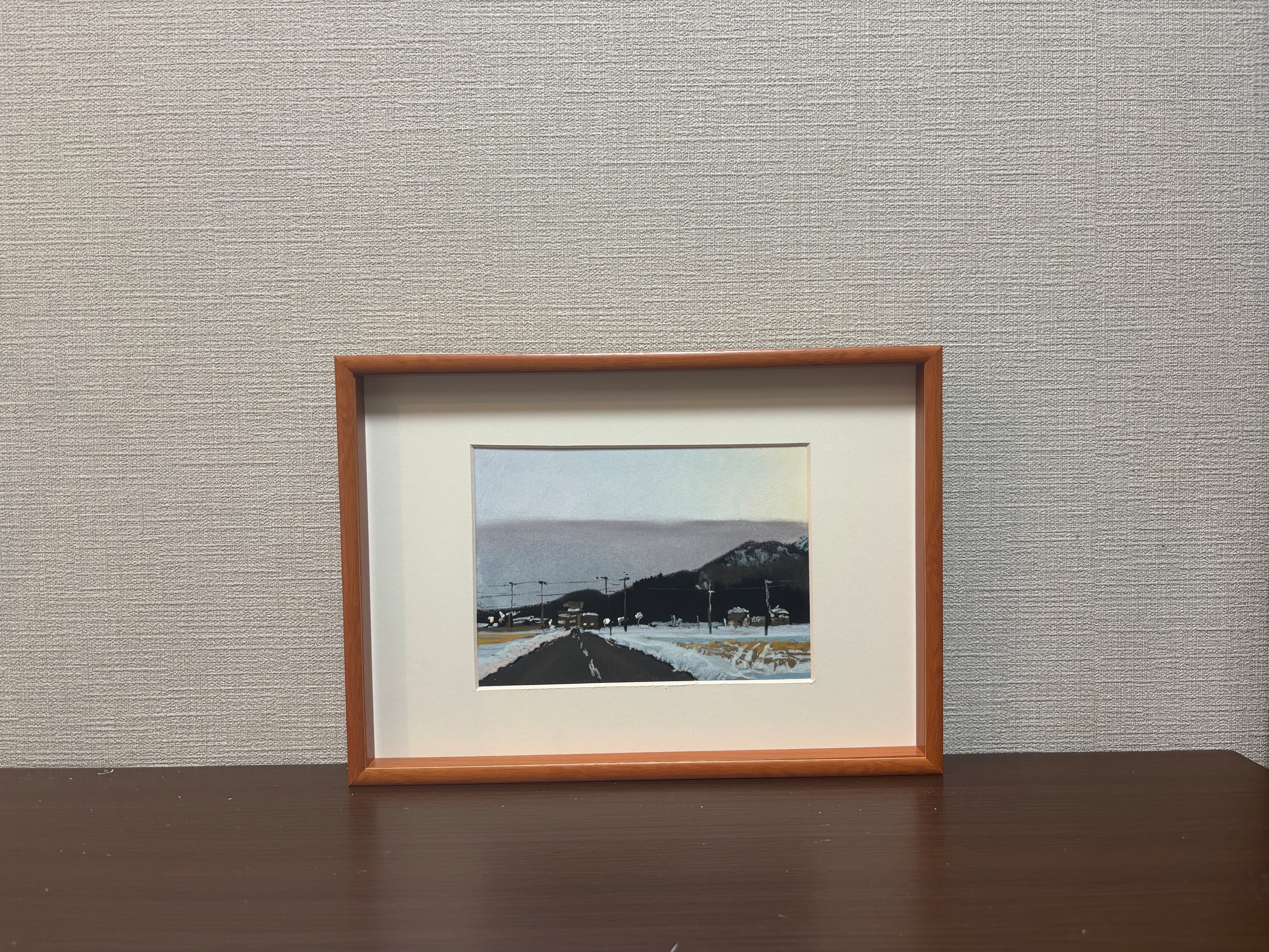 作品に合った額を選定し、額装した状態で作品を発送いたします。額装の雰囲気は画像2枚目、をご覧ください。画像の額装は、展示用の額装です。お買い上げいただいた際は、再度別の最適なマット及び額を選定して額装いたします。