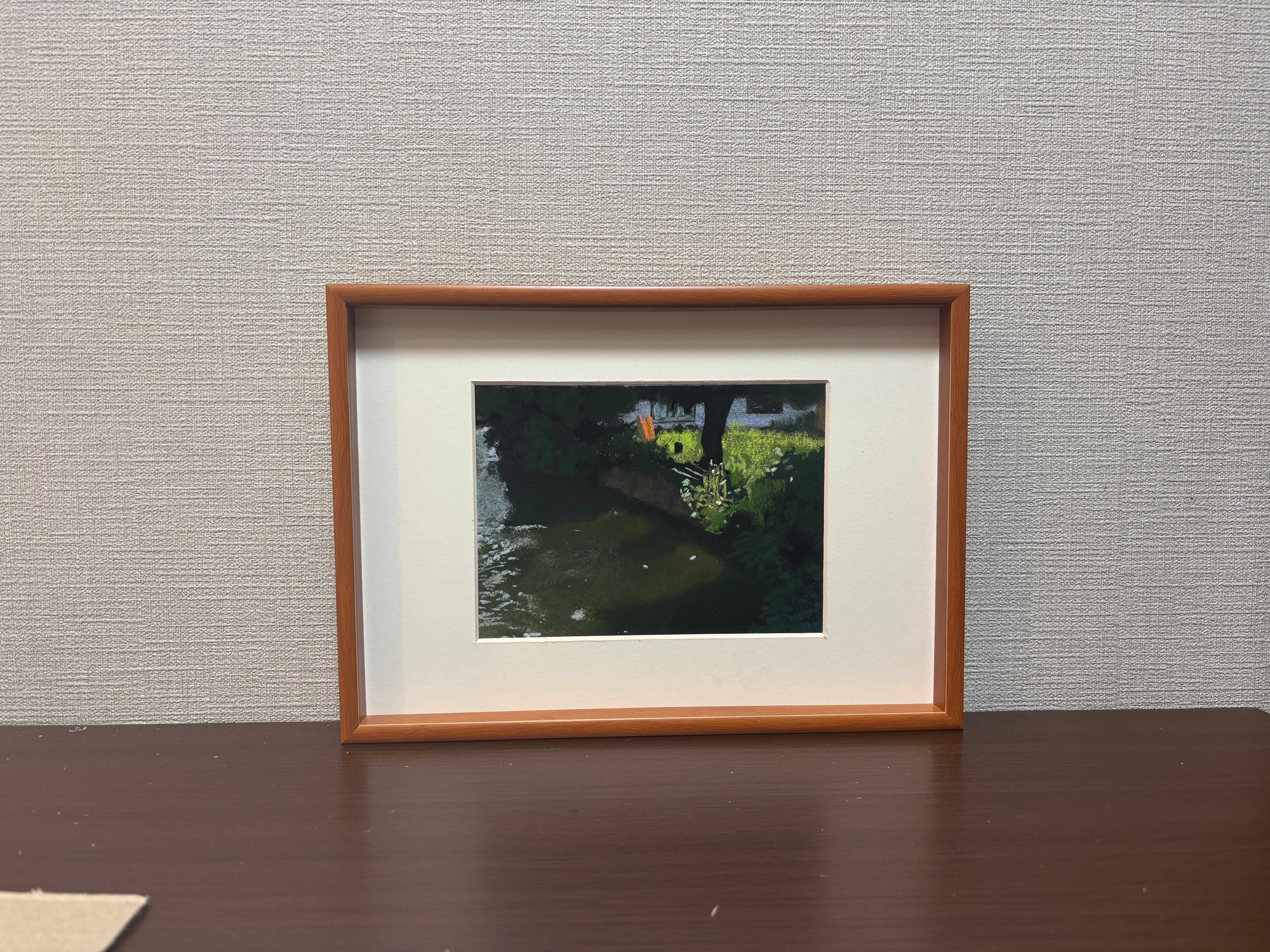 作品に合った額を選定し、額装した状態で作品を発送いたします。額装の雰囲気は画像2枚目、をご覧ください。画像の額装は、展示用の額装です。お買い上げいただいた際は、再度別の最適なマット及び額を選定して額装いたします。