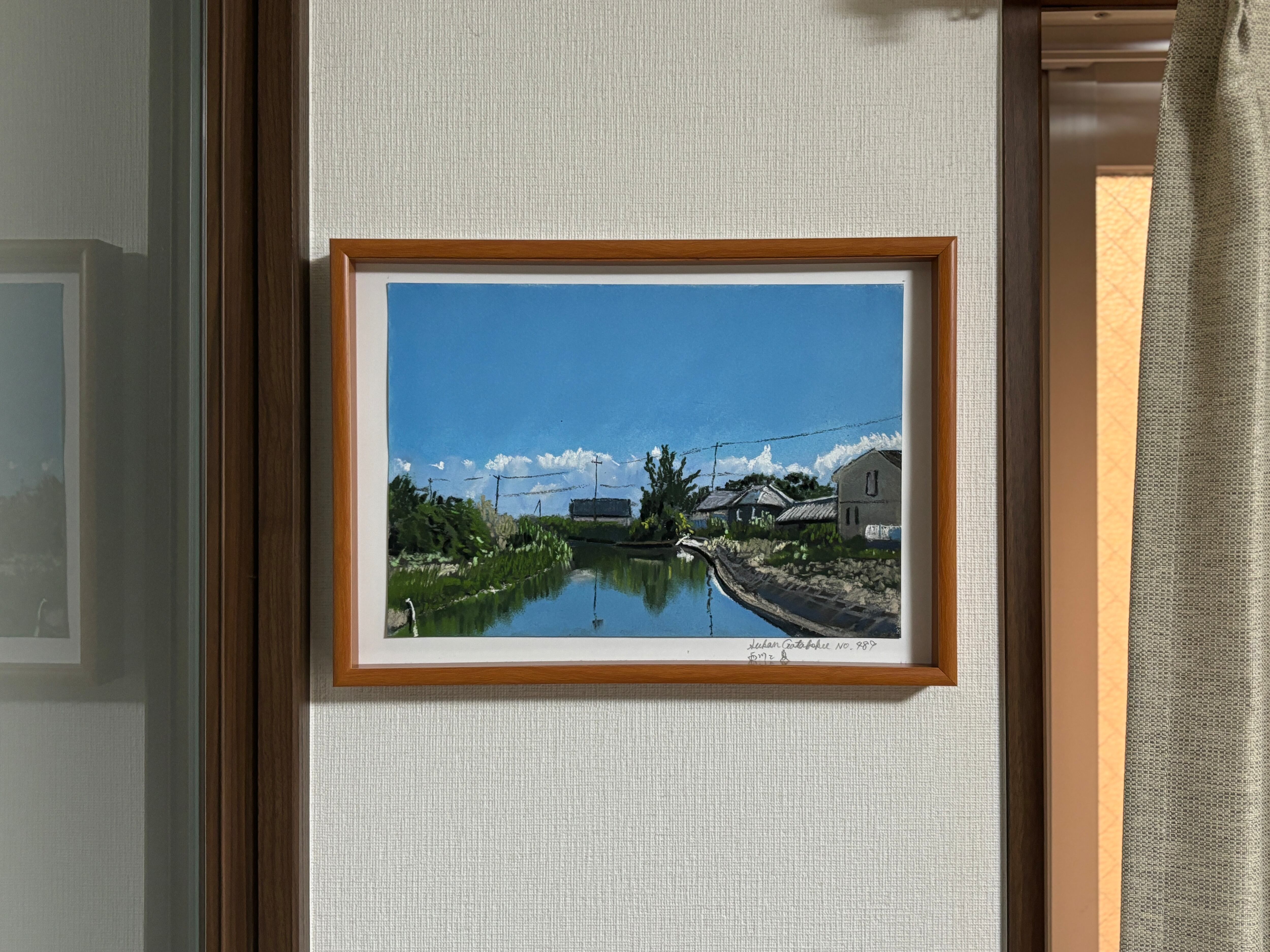 作品に合った額を選定し、額装した状態で作品を発送いたします。額装の雰囲気は画像2枚目以降、個展での展示の様子をご覧ください。