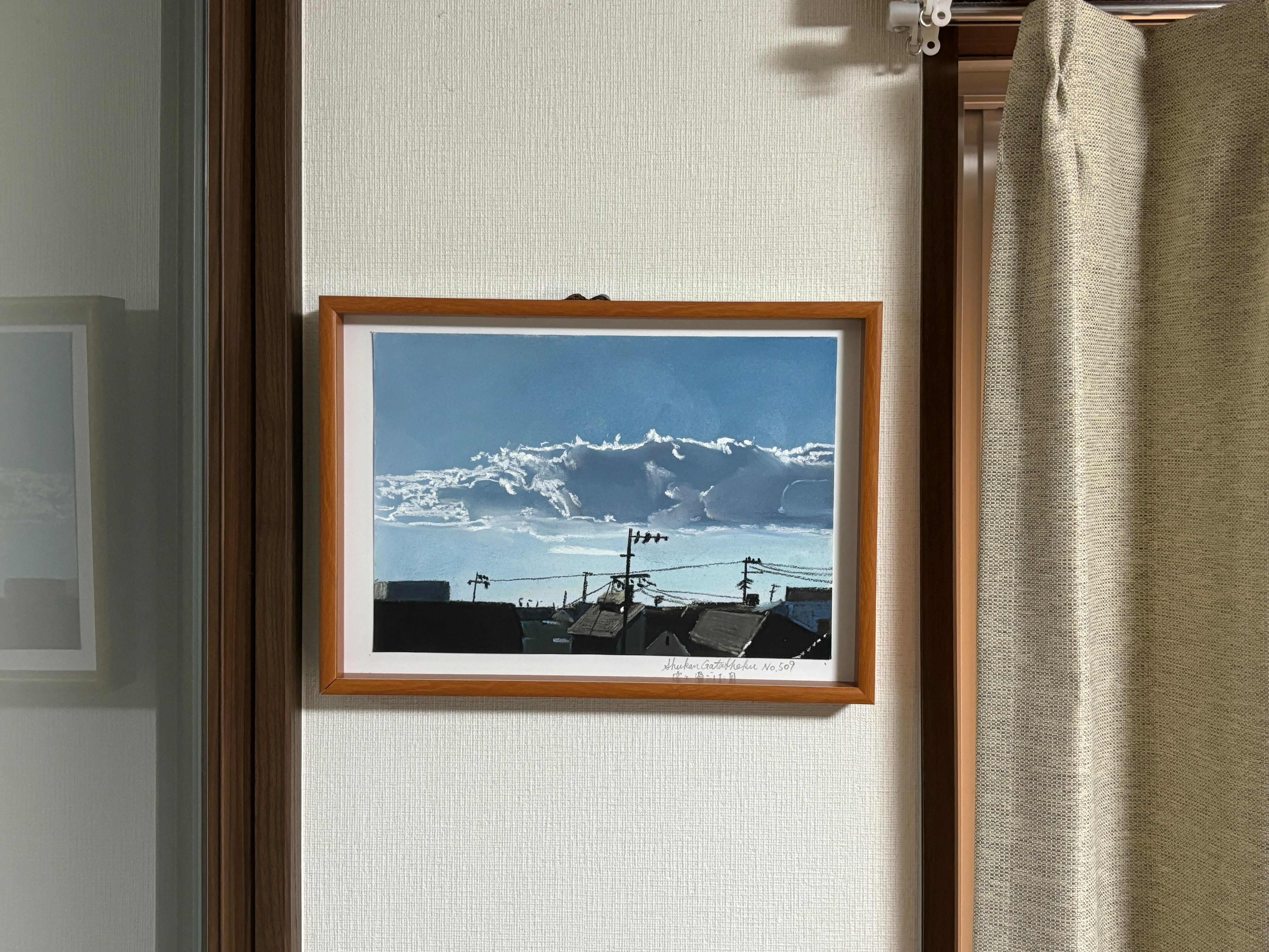 作品に合った額を選定し、額装した状態で作品を発送いたします。額装の雰囲気は画像2枚目以降、個展での展示の様子をご覧ください。