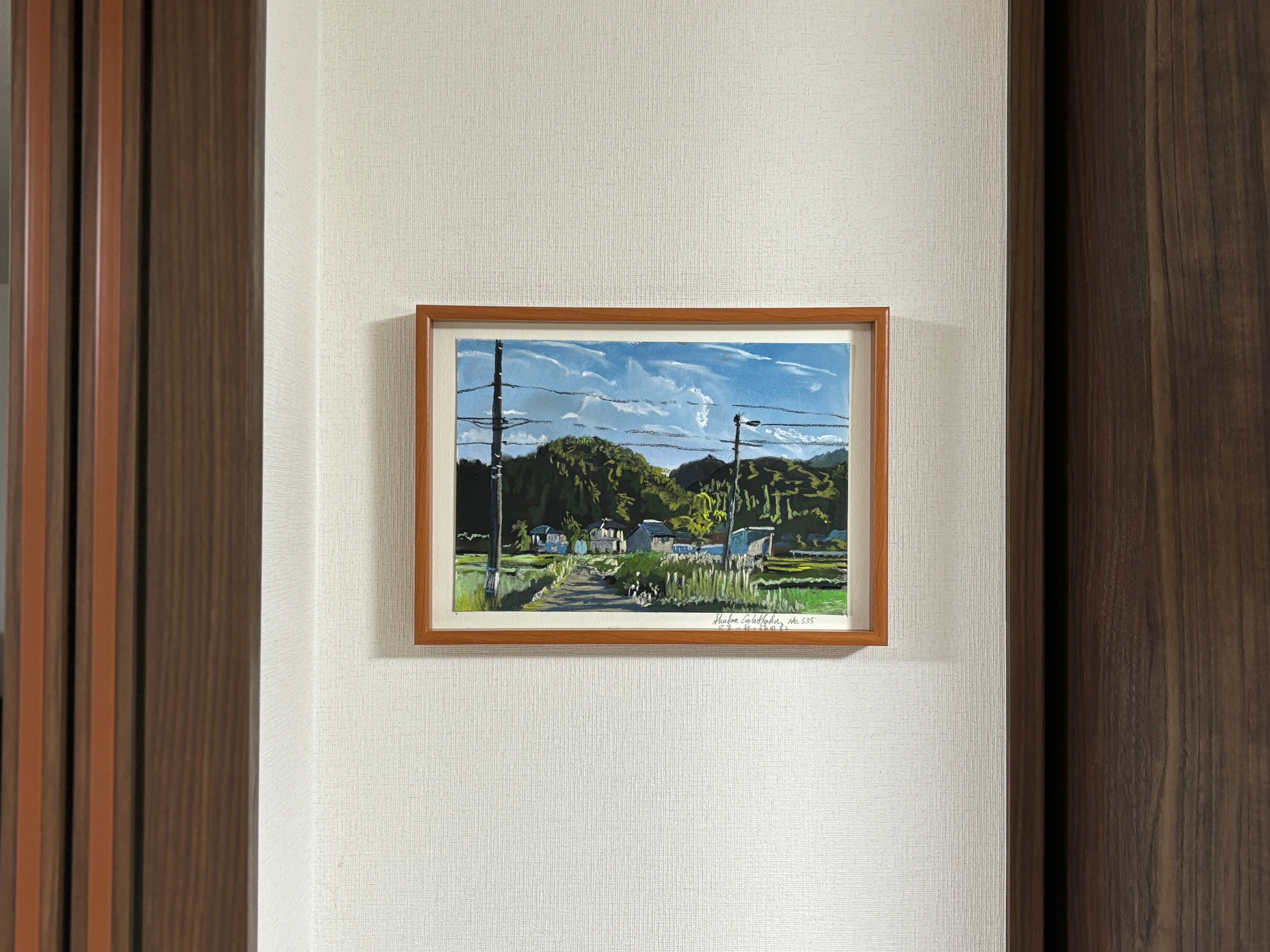 作品に合った額を選定し、額装した状態で作品を発送いたします。額装の雰囲気は画像2枚目以降、個展での展示の様子をご覧ください。