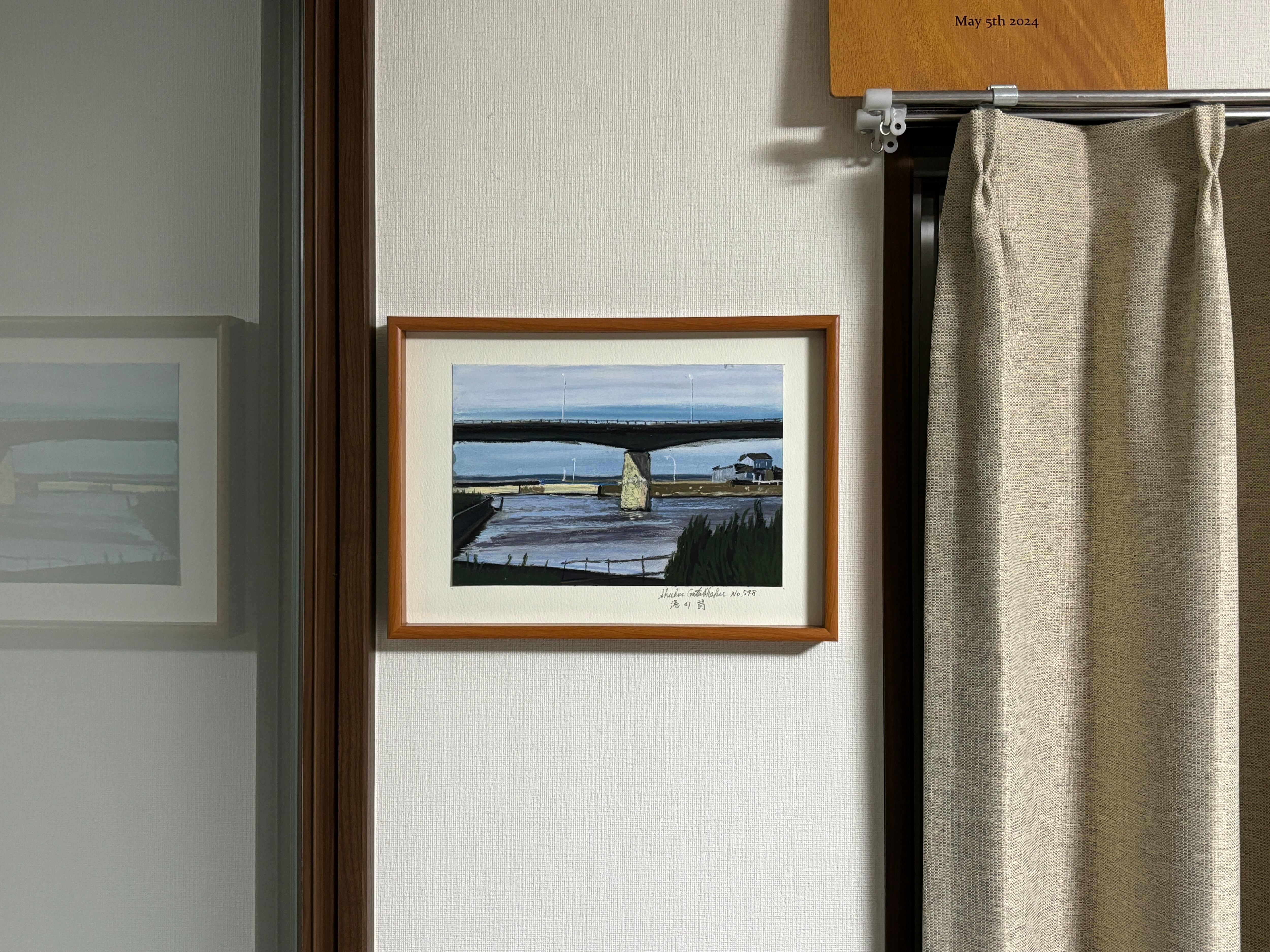 作品に合った額を選定し、額装した状態で作品を発送いたします。額装の雰囲気は画像2枚目以降、個展での展示の様子をご覧ください。